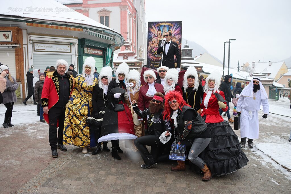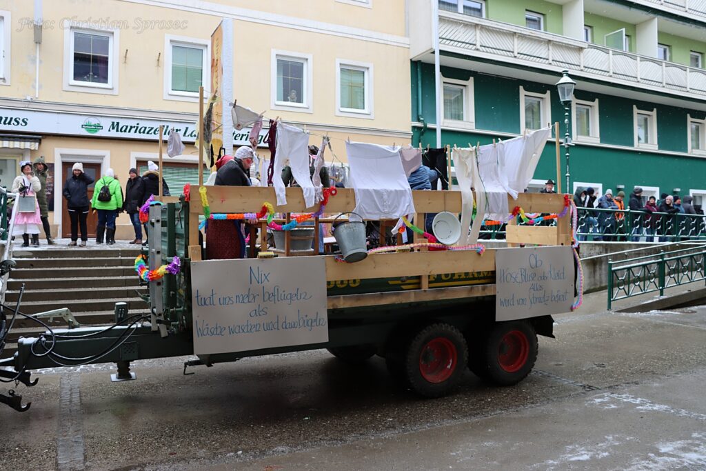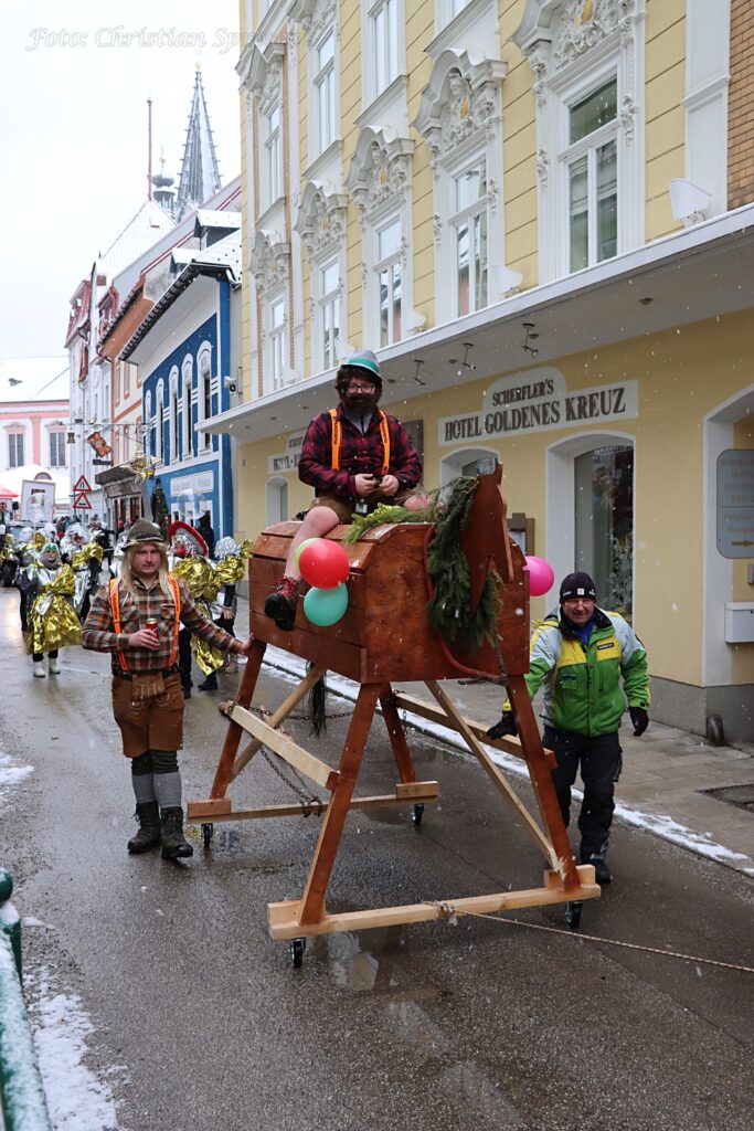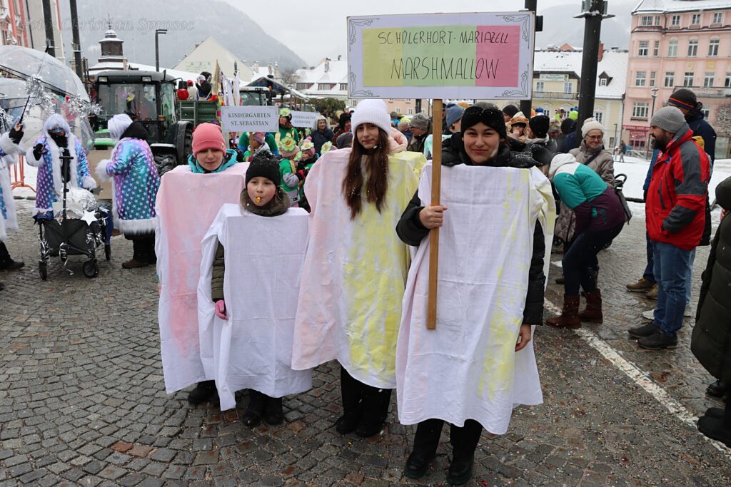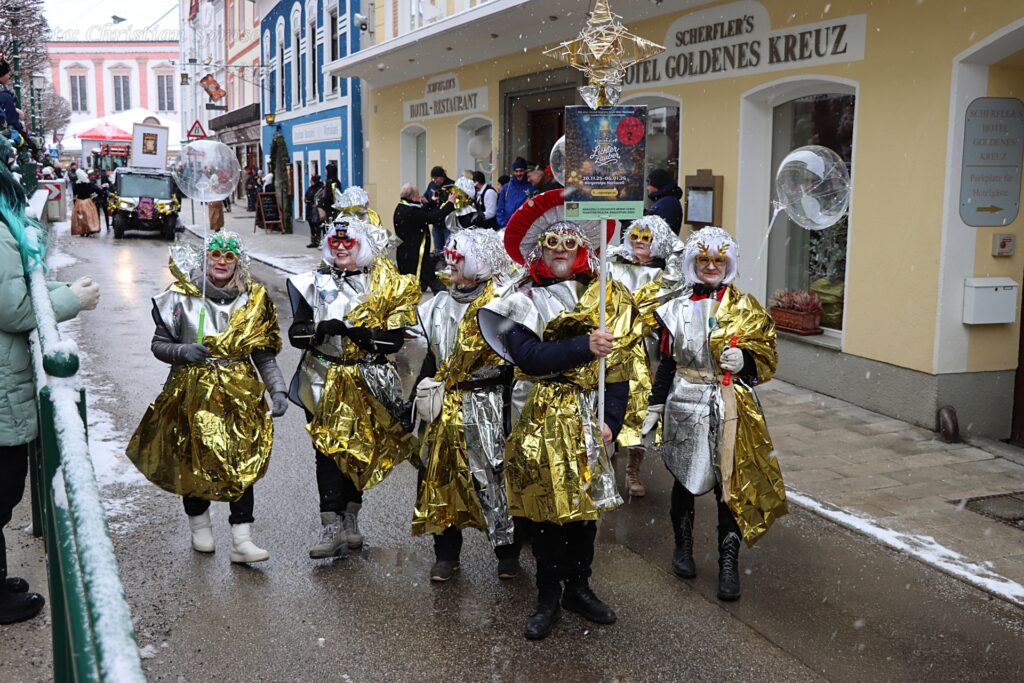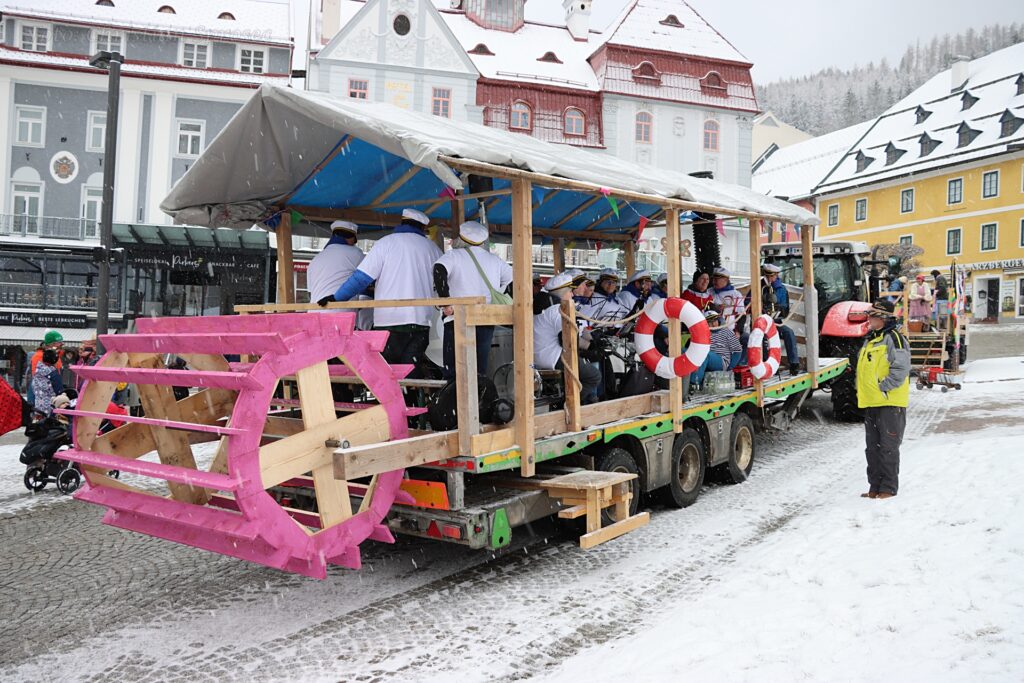 Mit viel Kreativität und Humor wurden unter anderem das Holzknechtland, der Lichterzauber, das Strandbuffet am Erlaufsee sowie „Rock me Mariazell“ – angelehnt an Falco. Auch Marshmallows, Glücksbringer, Gußwerker Sterndalspritzer, die Waschweiba, Matrosen, Scheichs und verschiedene Persönlichkeiten aus dem Mariazellerland wurden eindrucksvoll präsentiert oder augenzwinkernd auf die Schippe genommen.
